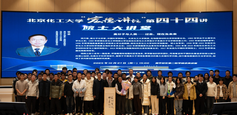 10月27日下午,北京化工大学“宏德讲坛”第四十四讲在昌平校区求真讲堂举行。中国科学院院士、北京化工大学教授杨万泰受邀作“高分子与人类——过去、现在及未来”专题报告。党委常委、副校长徐福建主持。